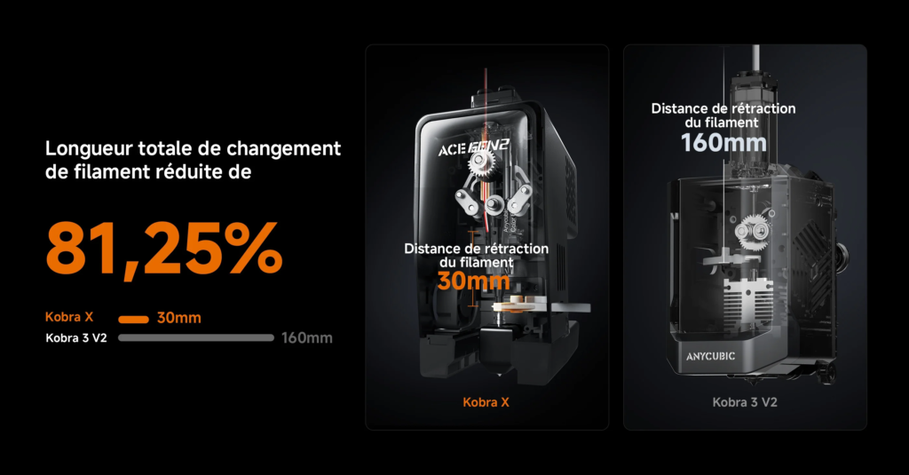 La technologie ACE Gen 2 développée par Anycubic améliore considérablement la gestion des changements de filament. Elle permet :