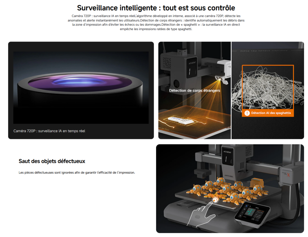 En cas de problème, l’imprimante peut ignorer les objets défectueux ou interrompre l’impression, limitant ainsi les pertes de filament.