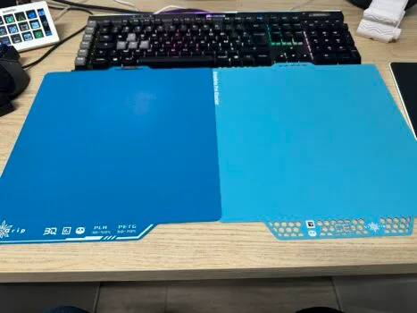 Ces plaques sont réputées pour avoir une accroche parfaite et ne nécessitent pas d’être chauffées sur les matières comme le PLA et le PETG. Je vous montrerais les différences entre les deux produits.