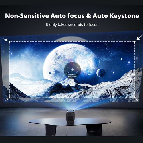 Le projecteur ETOE Seal Pro offre des fonctions pratiques de mise au point automatique et de correction automatique du trapèze, permettant une personnalisation facile à l’aide de la télécommande. Profitez de la projection d’une image carrée, stable et claire sous différents angles. Avec un zoom numérique de 50 % à 100 %, remplissez sans effort l’écran avec l’image souhaitée.