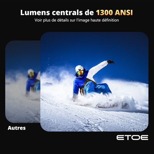 Le projecteur ETOE Seal Pro bénéficie d’une résolution native de 1920*1080 et d’une luminosité de 1300 lumens ANSI, offrant des visuels vibrants, époustouflants et vibrants.