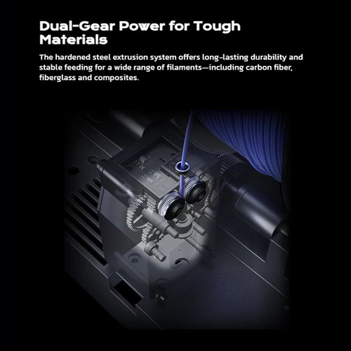 Compatible avec les filaments composites exigeants : carbone, fibre de verre, PLA-CF/GF, PETG-CF/GF.