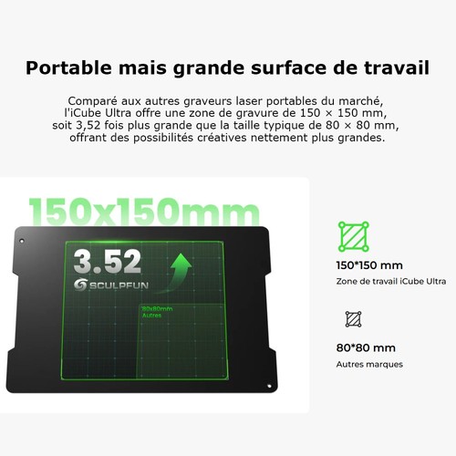 Le SCULPFUN iCube Ultra 12W est la solution idéale pour les débutants comme les professionnels recherchant un graveur laser de bureau compact mais puissant. Il allie facilité d’utilisation et précision, permettant aux utilisateurs de réaliser divers projets de gravure et de découpe avec confiance.