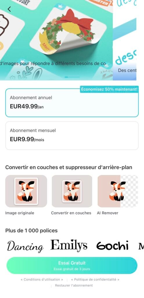 Il y a la possibilité de prendre un compte Premium pour avoir accès à encore plus de design. Cela dit si vous les créez vous même le logiciel est bien sûr gratuit.